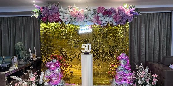 We created a magical 50th anniversary celebrations with shimmering gold backdrop, romantic floral backdrop, and a disco twist to light up the night!